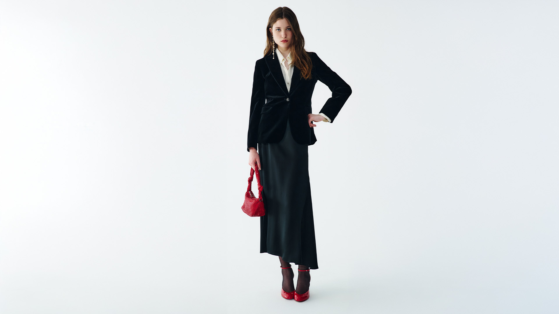 Black, velvet and sparkling details: the perfect mix for winter festivities.