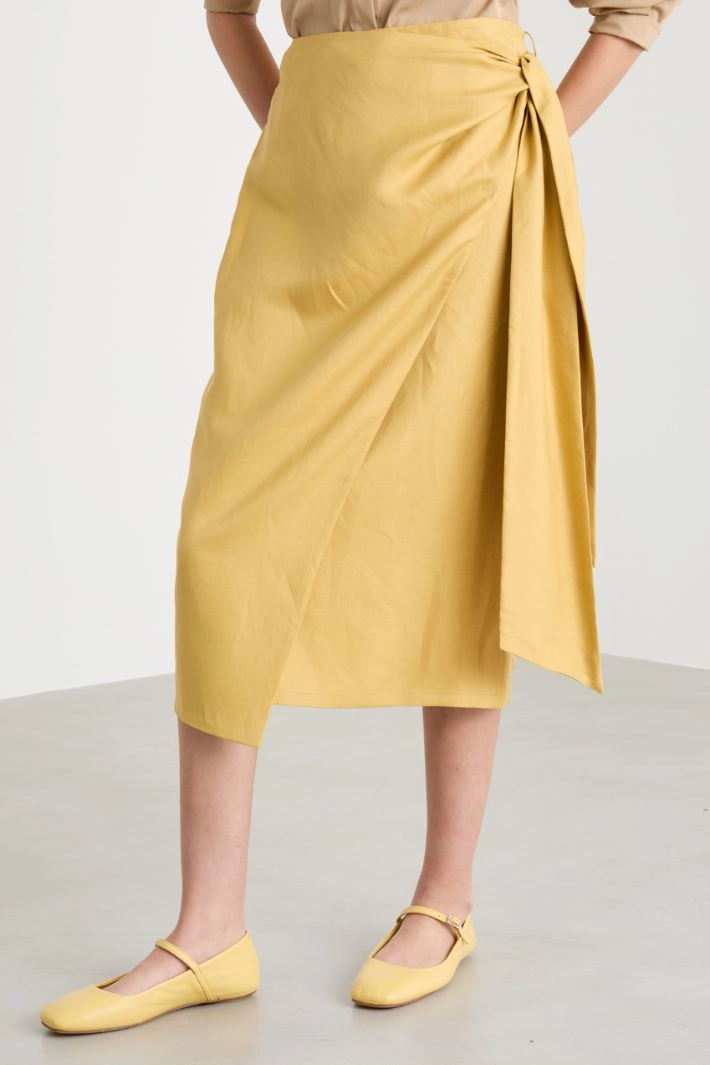 Linen and silk twill midi skirt