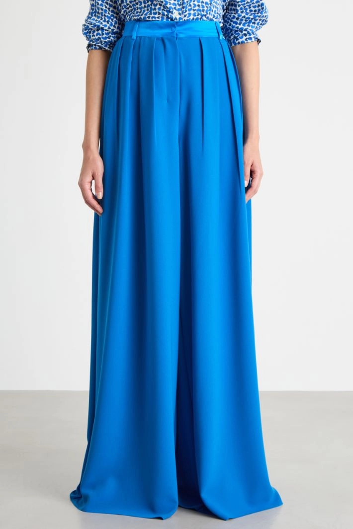 Wide-leg trousers in sablé, featuring irregular plissé pleats on the front and back, French pockets and a zip and hook fastening.