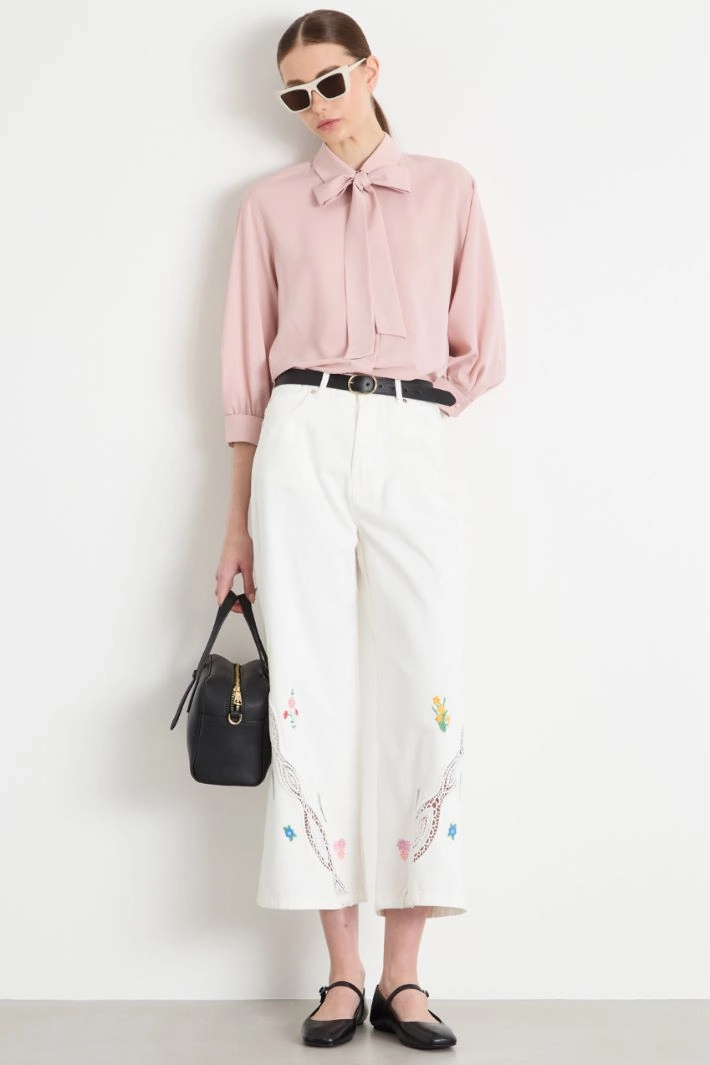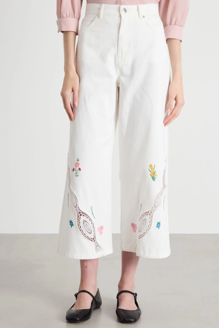 Floral-embroidered trousers