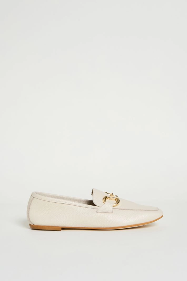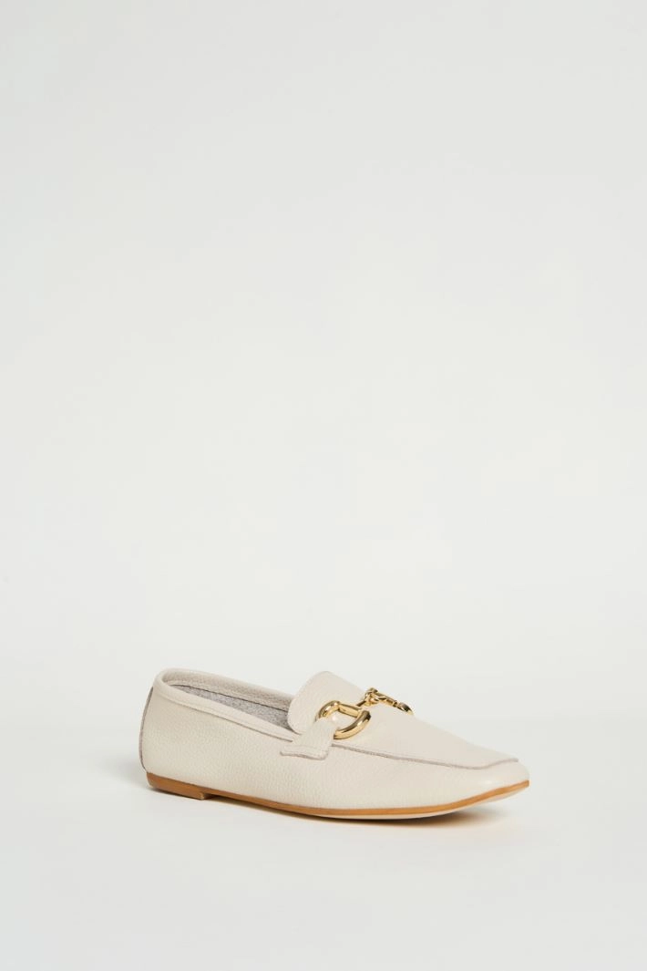 Loafers in genuine leather, featuring a square toe and a metal horsebit detail. Leather lining.