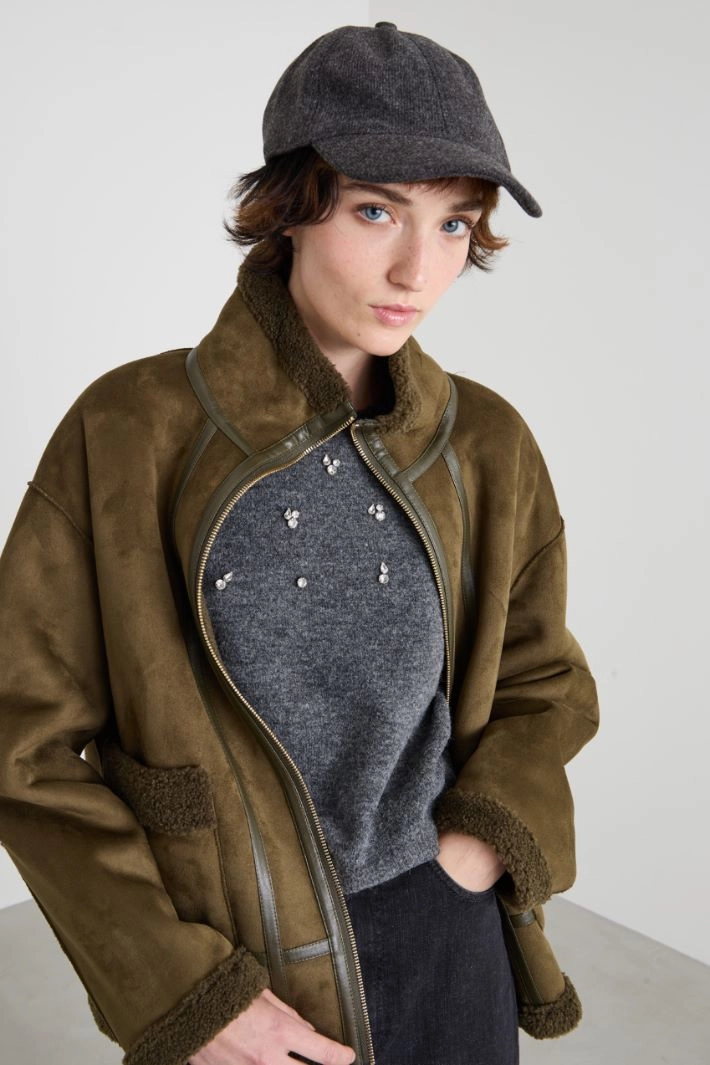 Fabric 65% polyester, 25% acrylic, 10% viscose; swearband 100% cotton; lining 100% cotton.