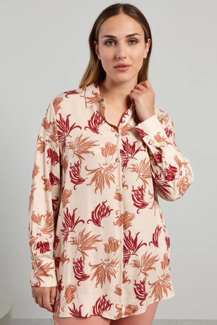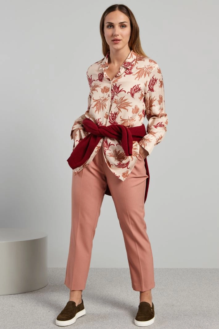 Fluid shirt in printed pure viscose twill, with classic collar, long sleeves with cuff and button. Hidden button fastening.
