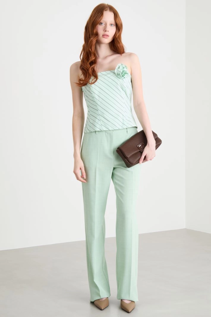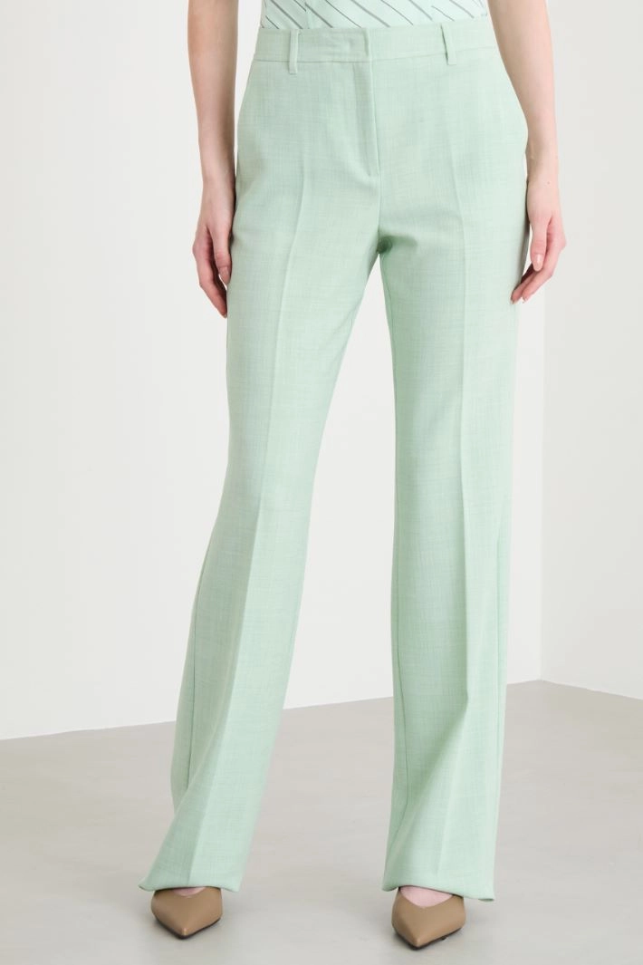 Straight-fit trousers in stretch basketweave, with French pockets, welt pockets on the back and a pressed crease down the front and back. Concealed fastening with a hook and zip.