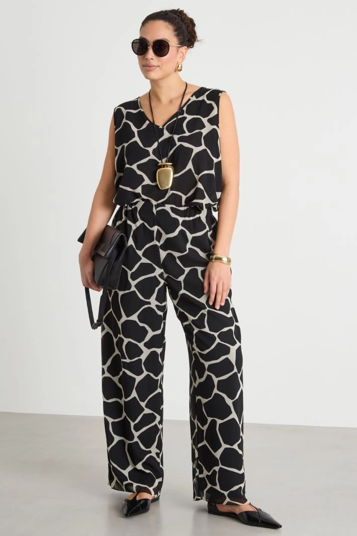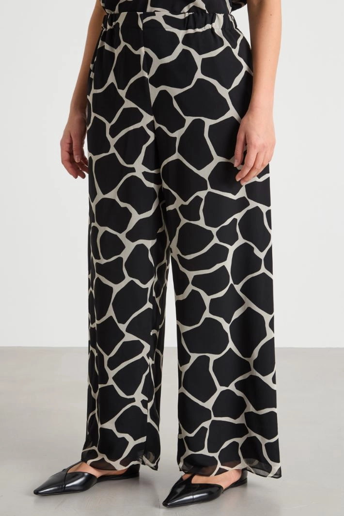 Palazzo trousers in printed georgette, featuring an elasticated insert at the back. Lined.