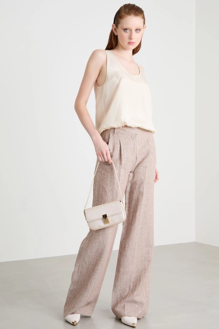 Straight-fit top crafted in pure habotai silk, with a round neck, a side slit and a drawstring hem.