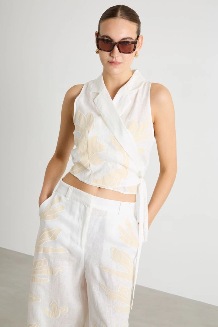 Embroidered Wrap Top