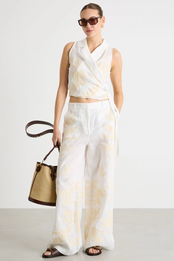 Embroidered Linen Trousers