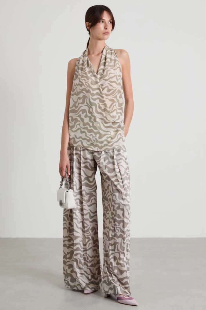 Straight-cut top in pure silk crepe de chine, with a crossover V-neckline at the front. Button fastening at the side.