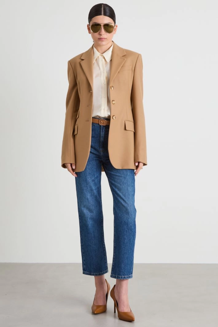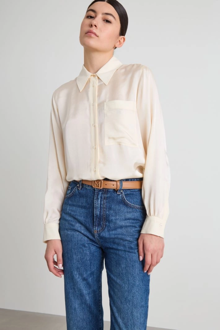 Straight-cut shirt in viscose-blend twill, with classic collar, long sleeves with cuff and button, patch pocket on the chest and yoke with box pleat on the back. Button fastening.