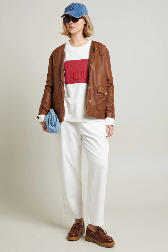 Jersey fabric 75% cotton, 20% polyester, 5% elastane; ribbed jersey fabric 95% cotton, 5% elastane.