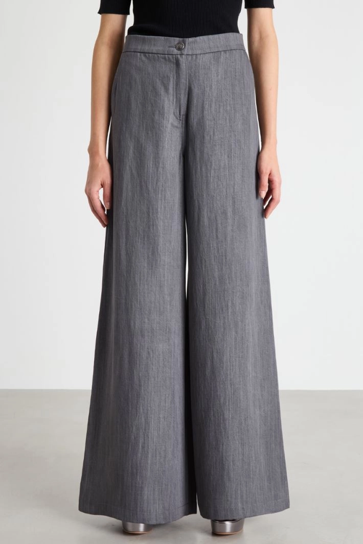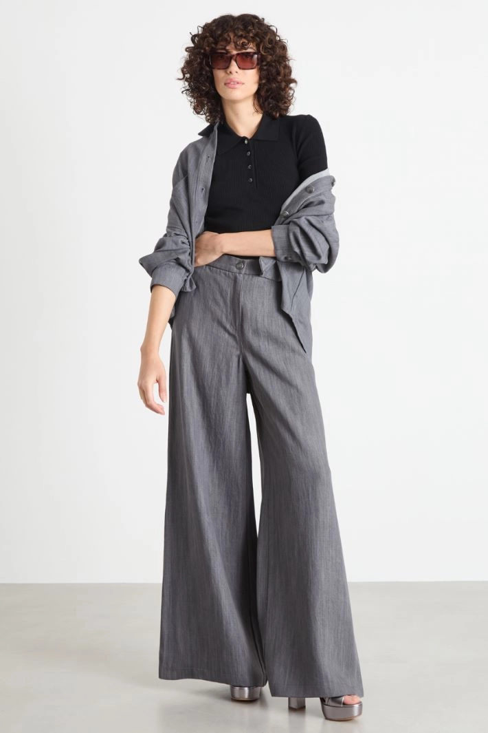 Flared-fit jeans featuring French pockets on the front and patch pockets on the back. Fastening with a button and concealed zip.