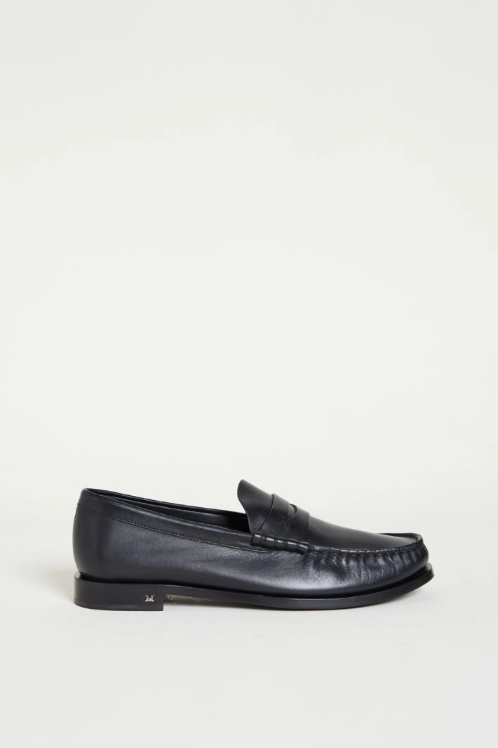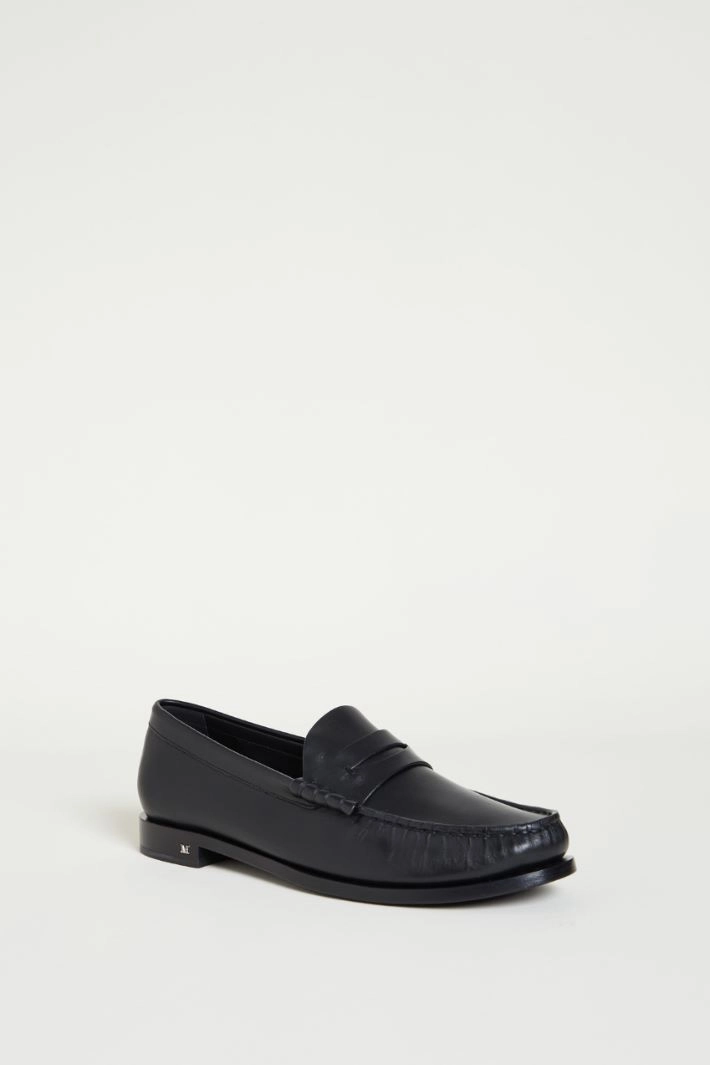 Loafers in soft leather with a semi-gloss finish, adorned with a saddle-shaped bag and lined in leather. Leather block sole.