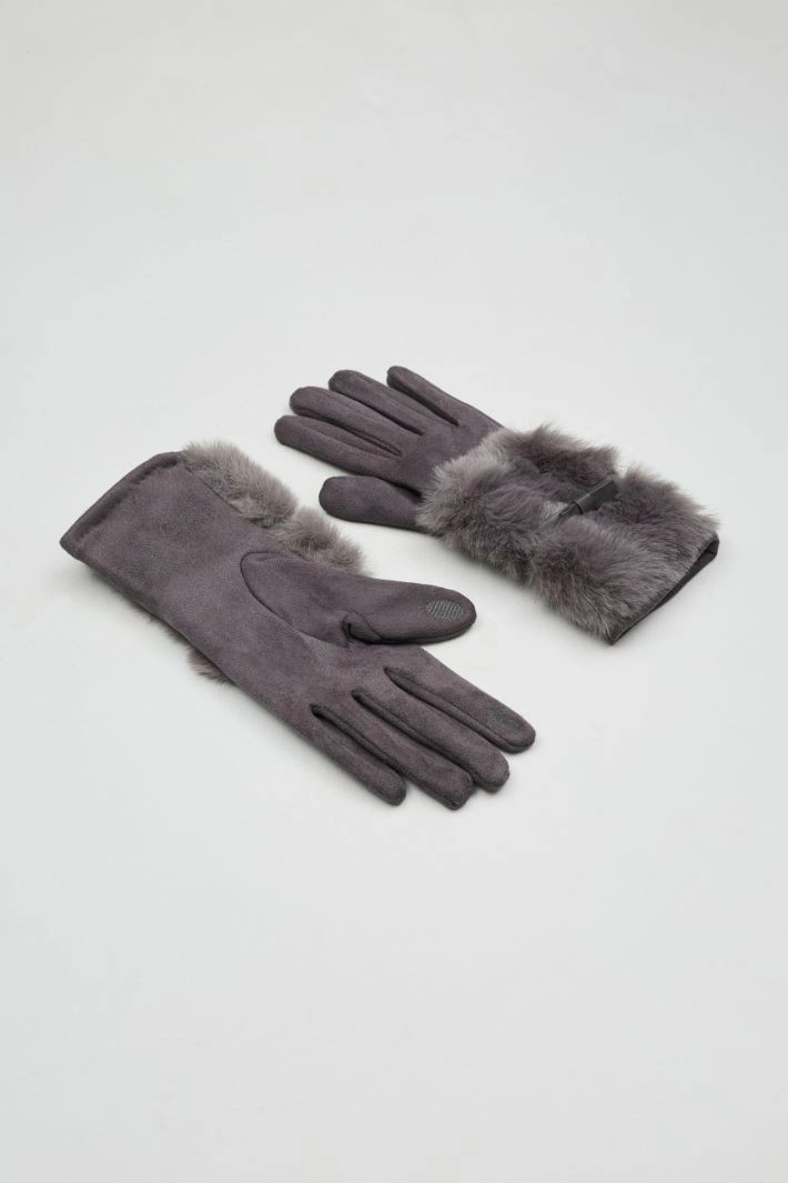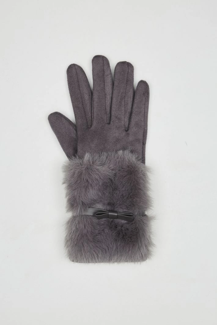 Gloves in suede-effect cotton blend jersey, with faux fur insert and bow motif on the wrist. Plush interior.