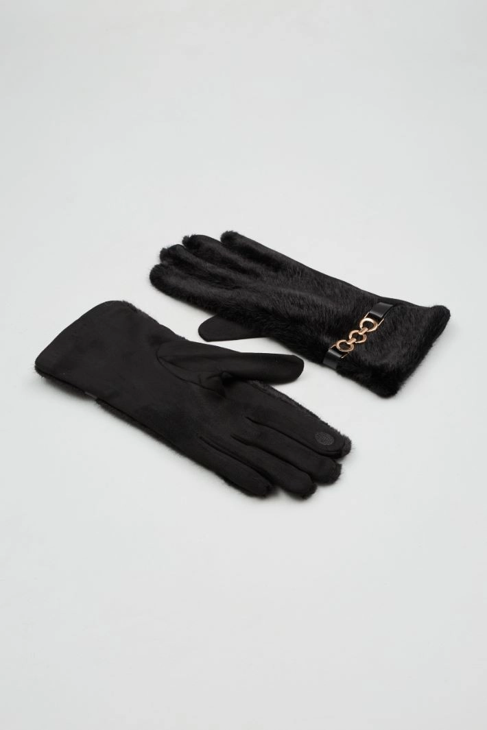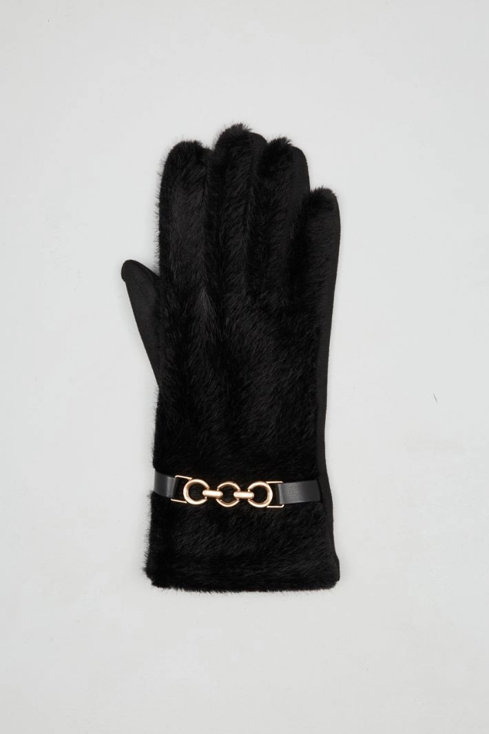 Gloves in suede-effect cotton blend jersey, with faux fur insert, metal chain detail and plush lining.