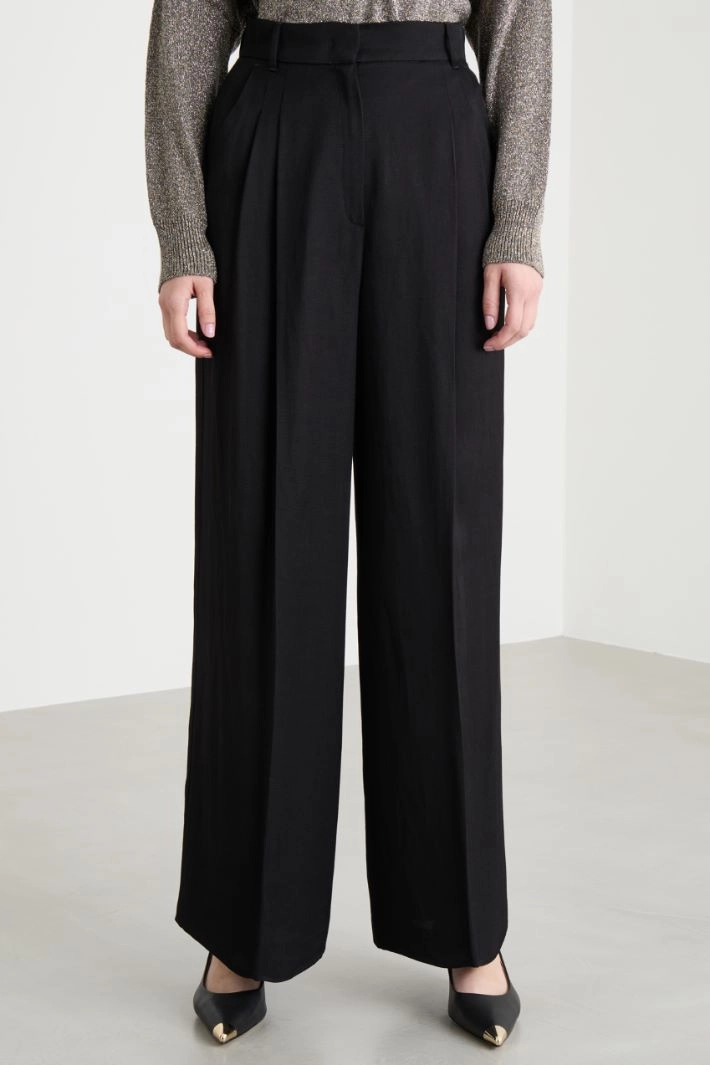Wide-leg trousers in viscose-blend twill, with belt loops, double pleats at the waist, a pressed crease, French pockets on the front and flap pockets on the back. Concealed hook and zip fastening.