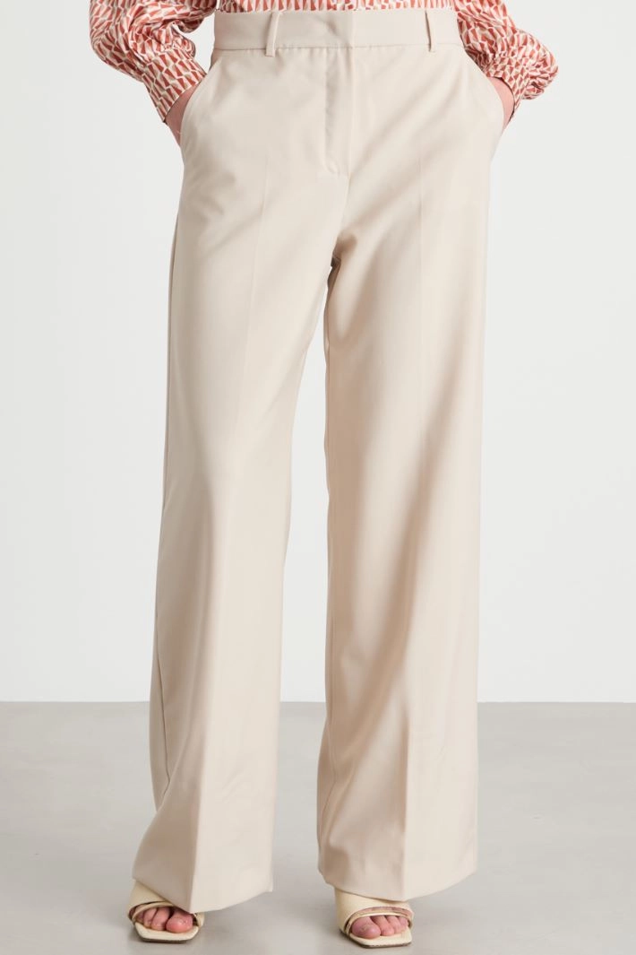 Palazzo trousers in pure stretch wool, featuring belt loops and French pockets on the front. Concealed hook and zip fastening.