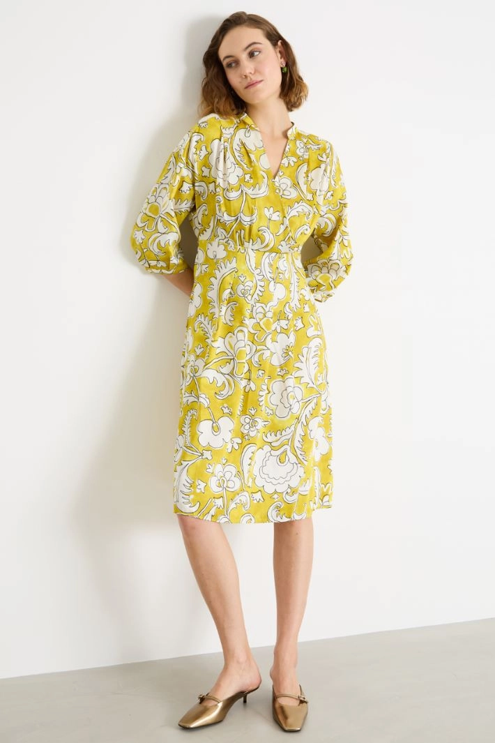 V-neck printed twill dress