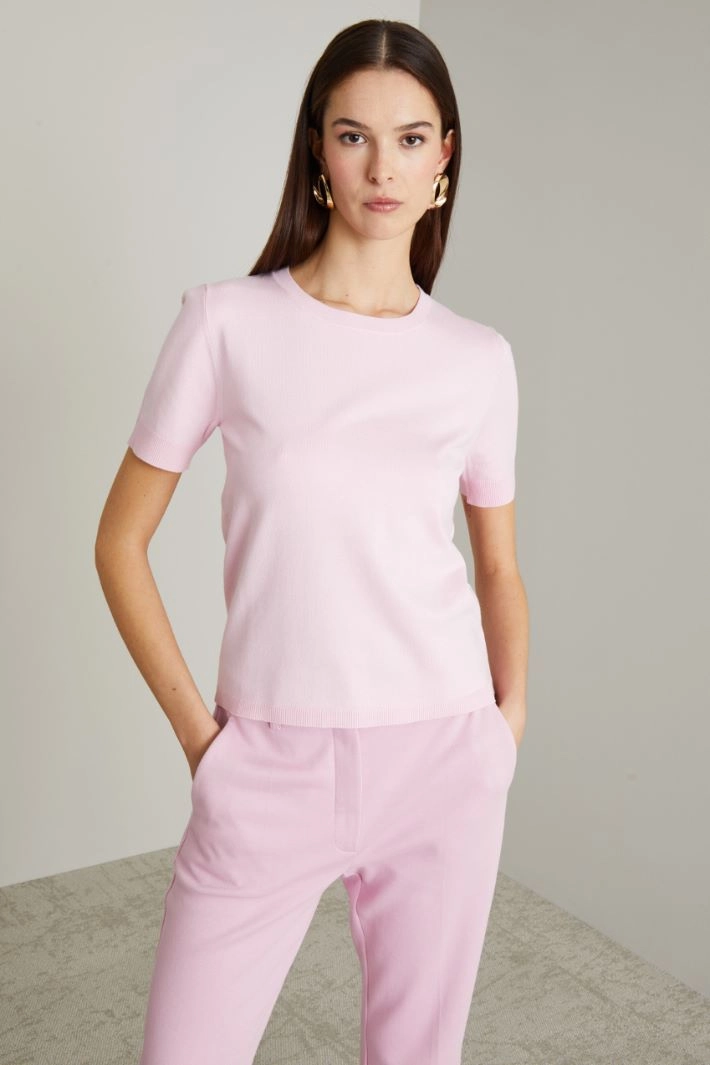 Regular-fit sweater in viscose blend yarn, with crew neck, short sleeves and ribbed trim.