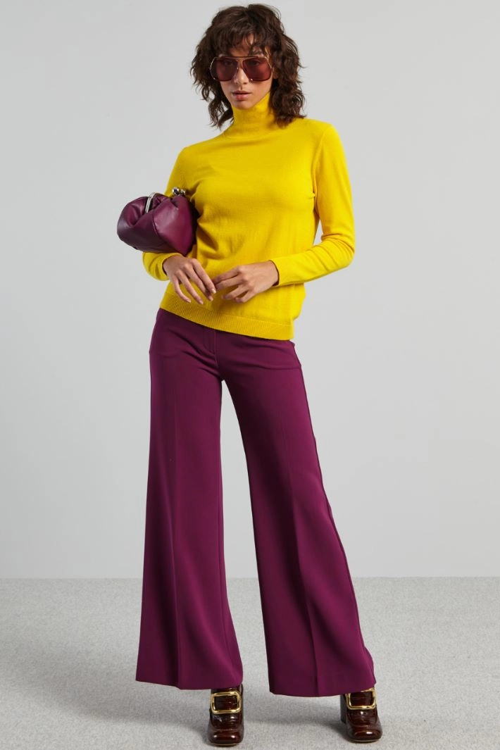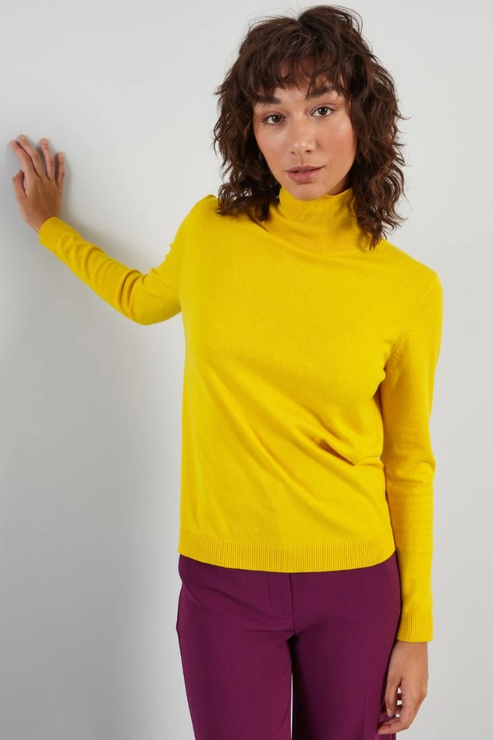 Regular-fit turtleneck in stretch silk and wool blend yarn, with high collar, long sleeves and ribbed trims.