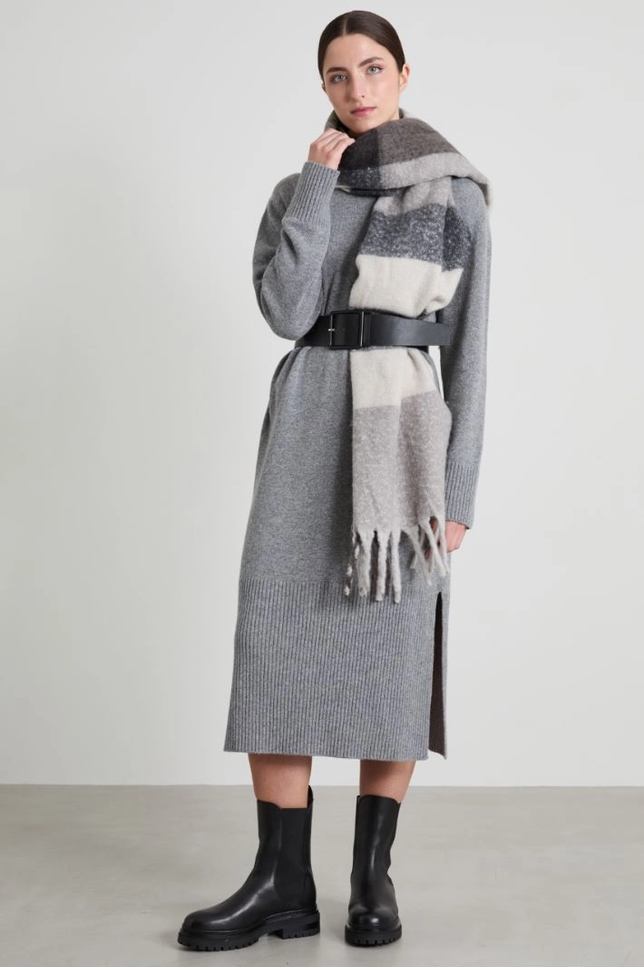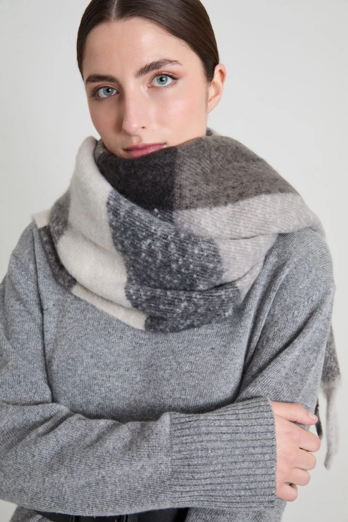 Fringed scarf in yarn-dyed fabric with a fluffy effect.