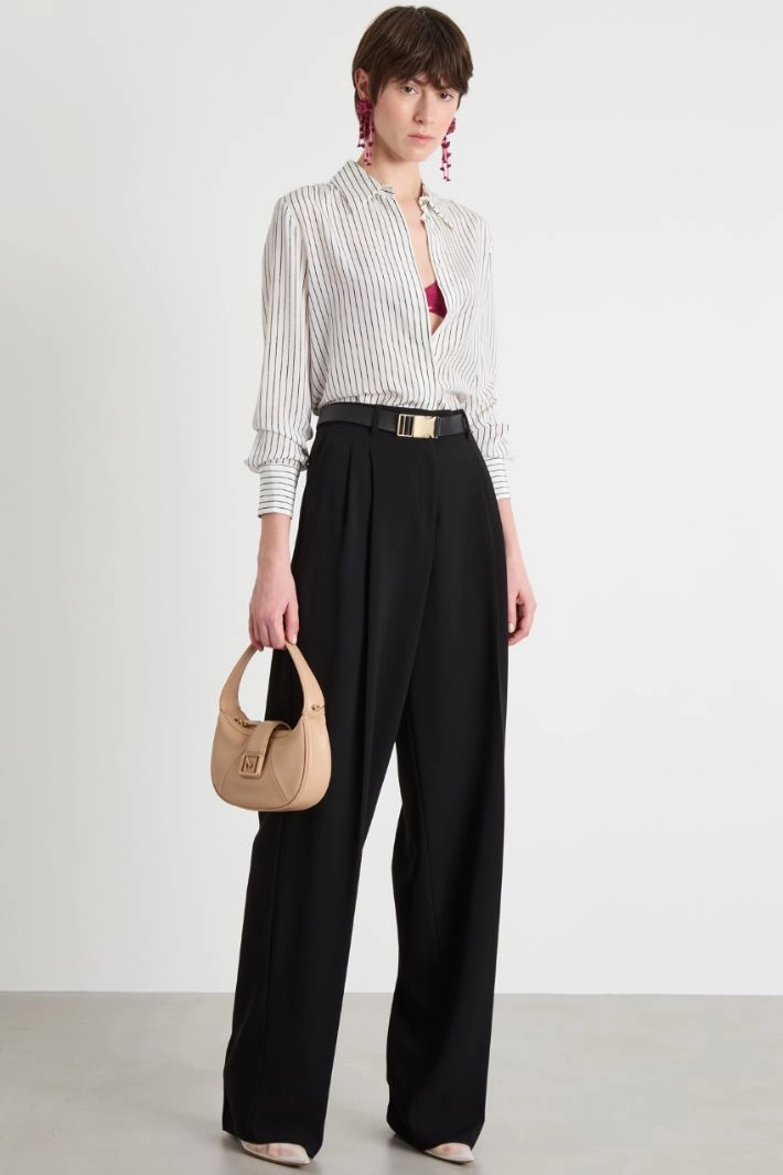 Trousers fabric 71% triacetate, 29% polyester; with belt in polyester with polyurethane coating.
