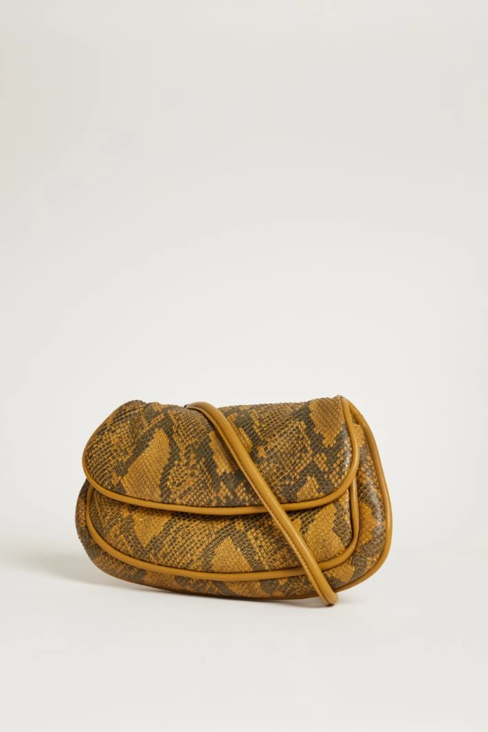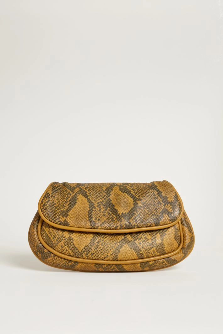 Clutch bag in padded nappa leather, featuring a shoulder strap and smooth leather detailing. Flap closure.