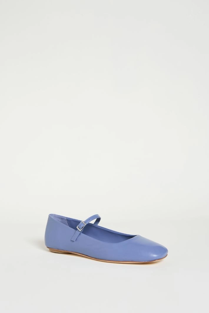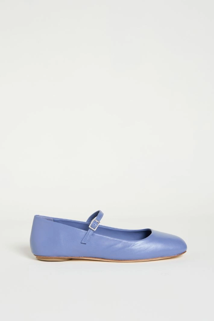 Ballet flats in nappa leather, featuring a rounded trapeze toe and an adjustable strap with a metal buckle. Nappa leather lining. Leather sole.