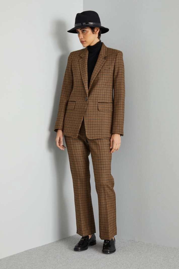Fabric 100% wool; swearband 60% cotton, 40% polyester; with details in 100% polyester; coating polyurethane; other parts metal.