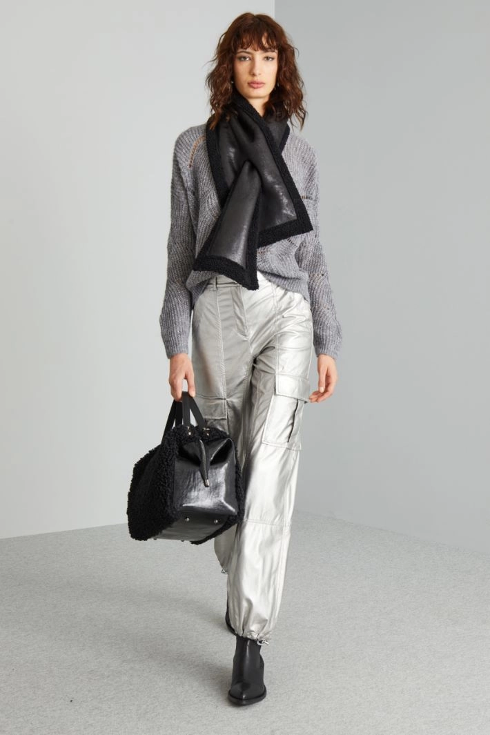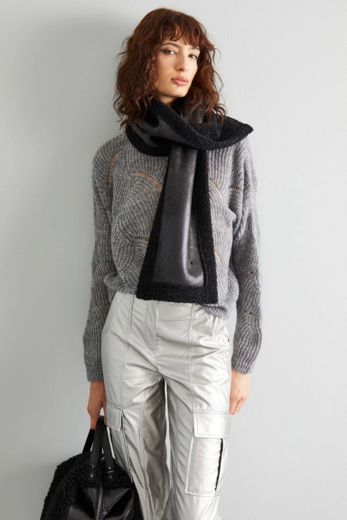 Scarf in sheepskin-effect coated fabric, with maxi buttonhole.