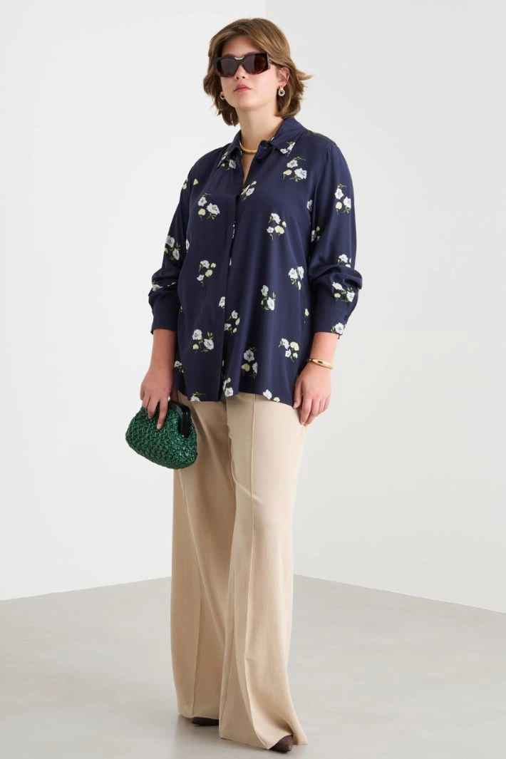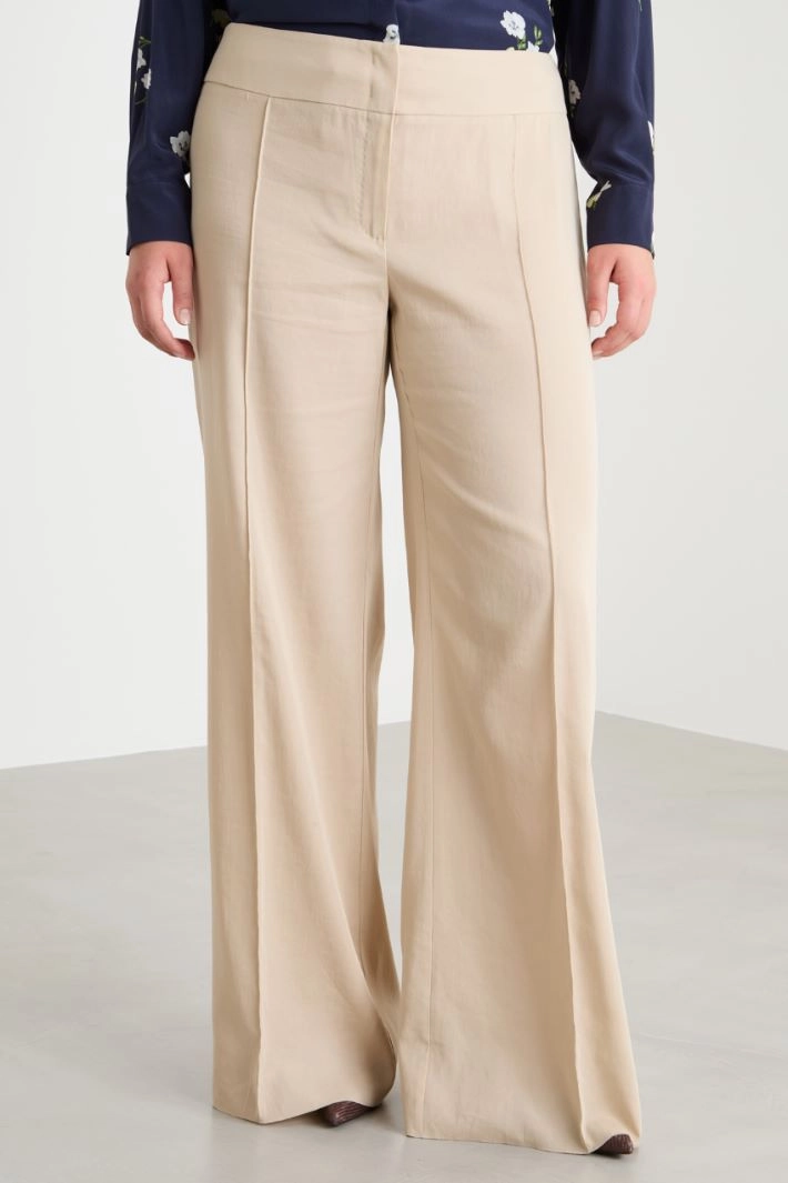 Wide-leg trousers crafted from pure cotton crepe, featuring a stitched crease on the front, a shaped back yoke and a zip and hook-and-bar fastening.