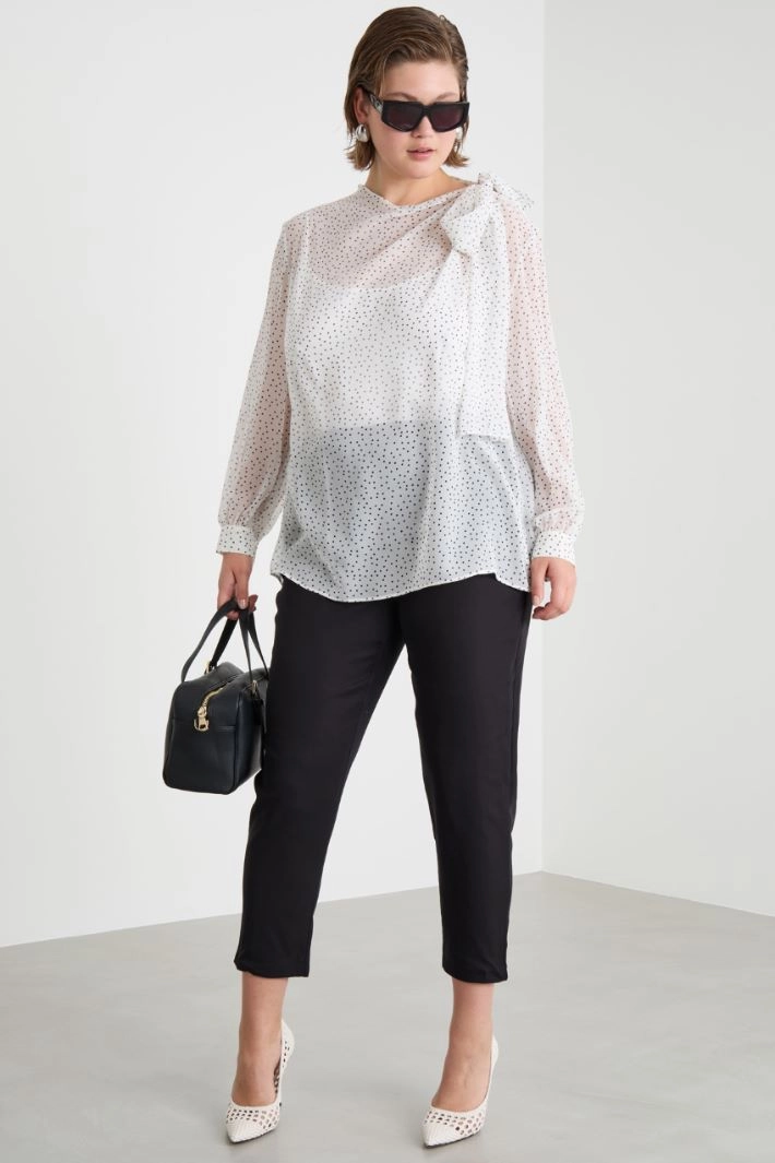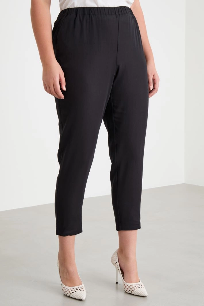 Slim-fit trousers in pure cotton crepe, with an elasticated waist and French pockets.