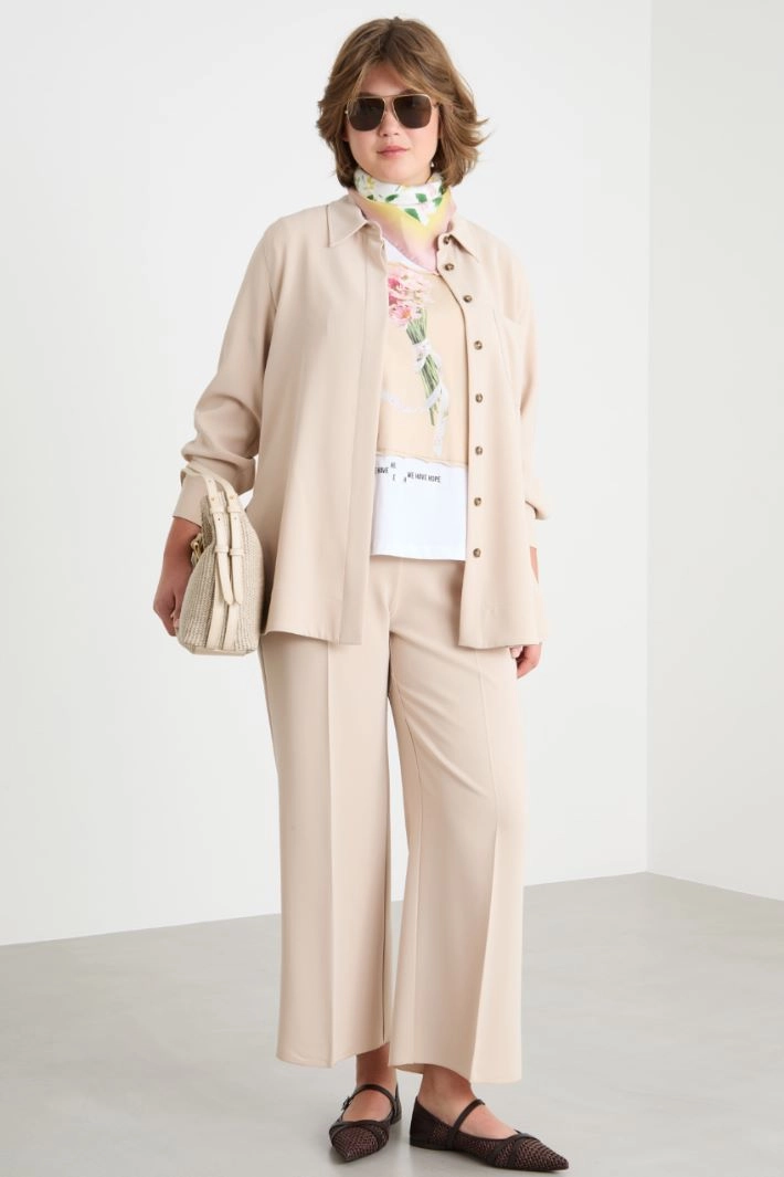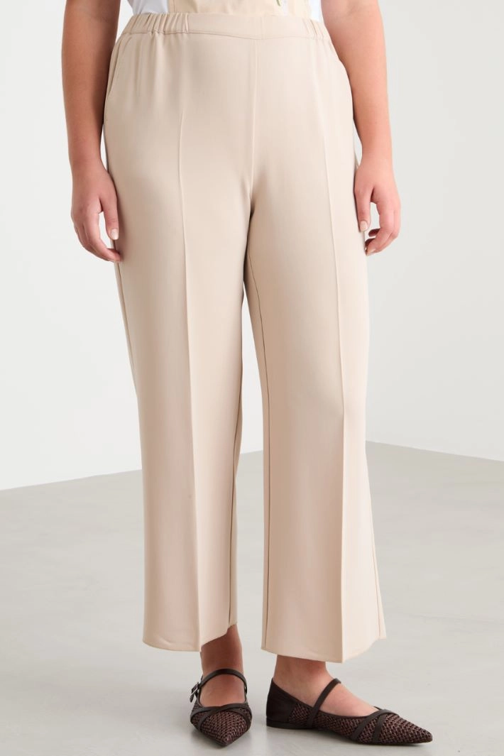 Straight-fit trousers in stretch cady, with French pockets on the front and central pintucks. Fastening with a zip and hook.