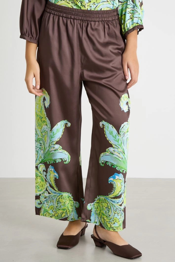 Wide-leg cropped trousers crafted in printed twill, with an elasticated waist and French pockets.