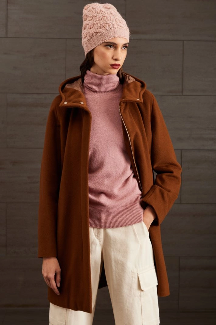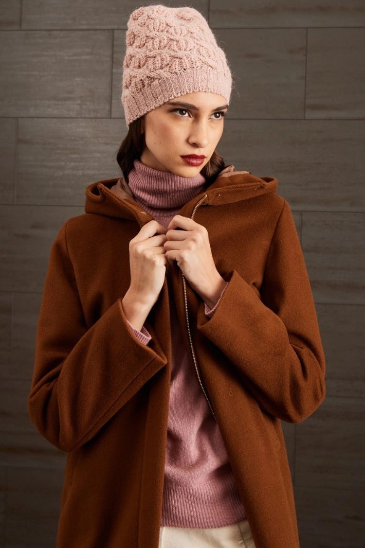 Beanie in wool, alpaca and viscose blend knit, with lurex yarn insert and cable knit.