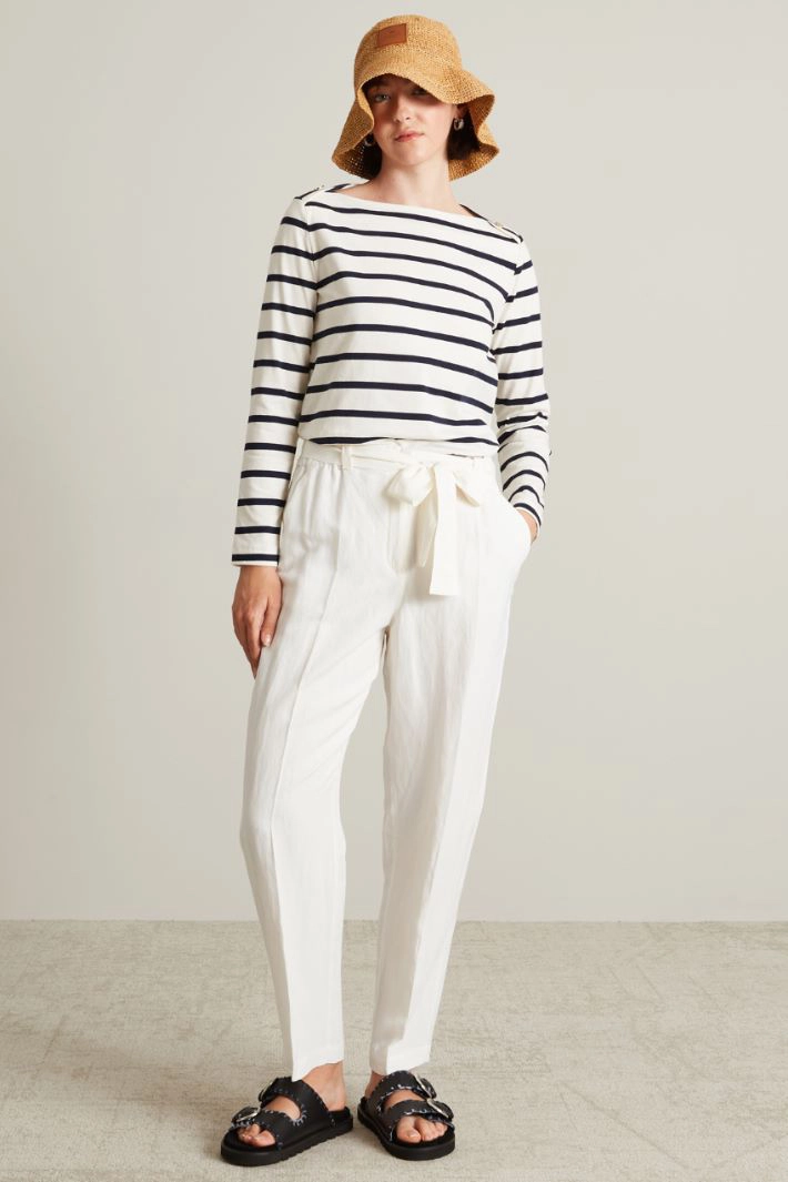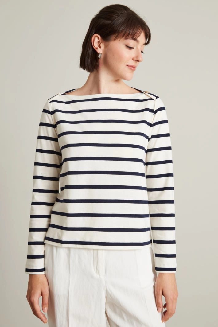 Regular-fit T-shirt in printed pure cotton jersey, boat neckline with asymmetrical button on one shoulder and long sleeves.
