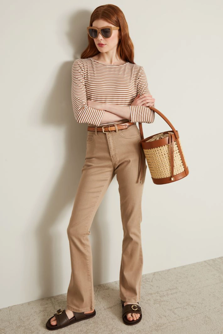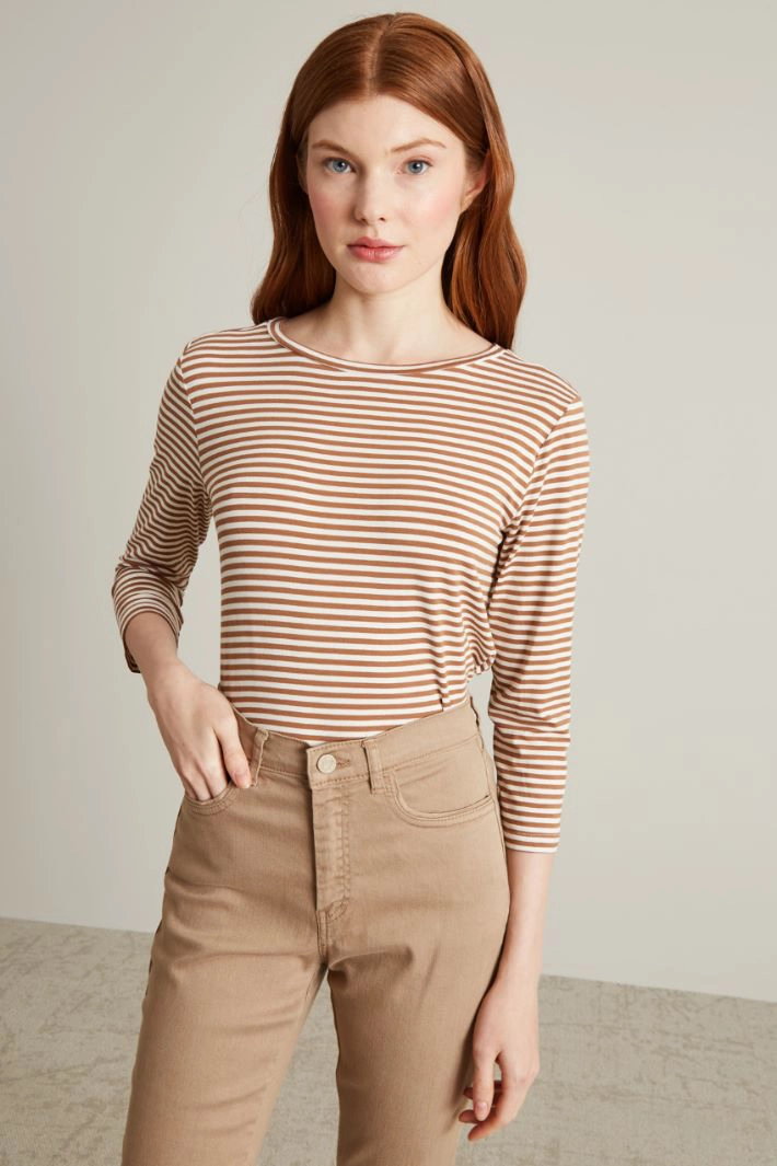 Fitted T-shirt in stretch viscose jersey, with a crew neck and long sleeves.